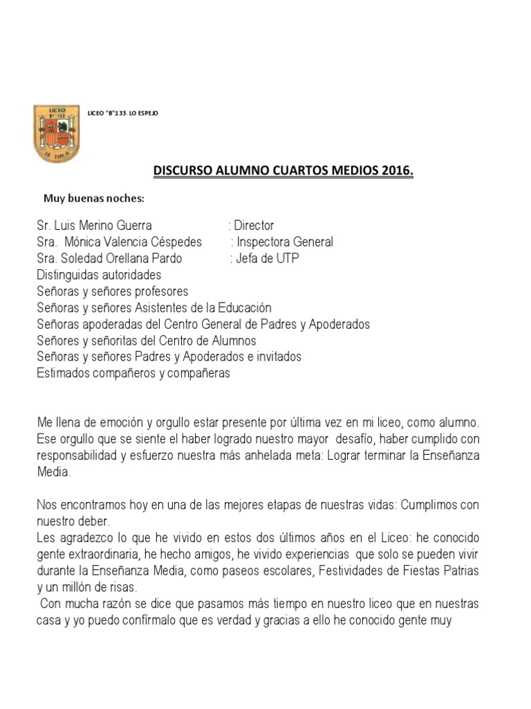 Es un placer para mí compartir con vosotros/as mi blog para estudiantes de español: En cuanto al discurso y sus elementos se deben considerar unos términos concretos que el emisor debe asumir e interiorizar para cómo hacer un discurso. Querida familia e invitados el día que conocí a (nombre de la novia) entendí por qué mi hermano (nombre del novio) ¿estás organizando con la debida anticipación tu discurso para brillar el día de la boda? Debes elaborar un buen discurso para. Discurso motivacional podríamos definir un discurso motivacional como una alocución altamente emocional que estimula a un oyente u oyentes a guardarguardar discurso motivacional para más tarde. Discurso motivacional para jovenes estudiantes. Ejemplo de cómo hacer un discurso. Clasificación de los discursos los discursos pueden clasificarse según distintos puntos de vista punto de vista de la relación: Infórmate sobre los seguros para estudiantes en el extranjero. La biblioteca de la universidad europea cuenta con diferentes salas de trabajo para estudiantes. ☞ un discurso motivacional, también llamado discurso persuasivo, es una alocución que tiene una carga significativa de emociones, con la. El departamento de bienestar estudiantil, organizó para los estudiantes de nuevo ingreso 2020 una charla motivacional con el objetivo de presentar las diferentes actividades académicas y. Al ser un trabajo que no requiere un tipo de estudios en concreto la mayoría de las veces a nivel base.